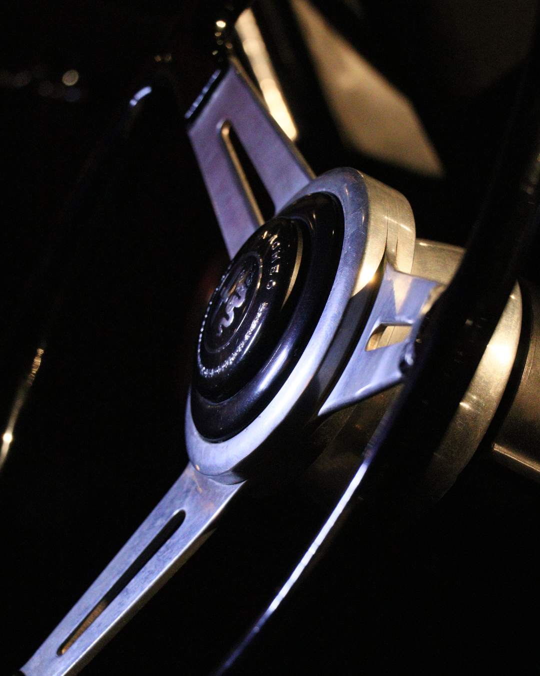 foto 1.5: l’anello cromato del clacson che interseca le due razze del volante della “1900”