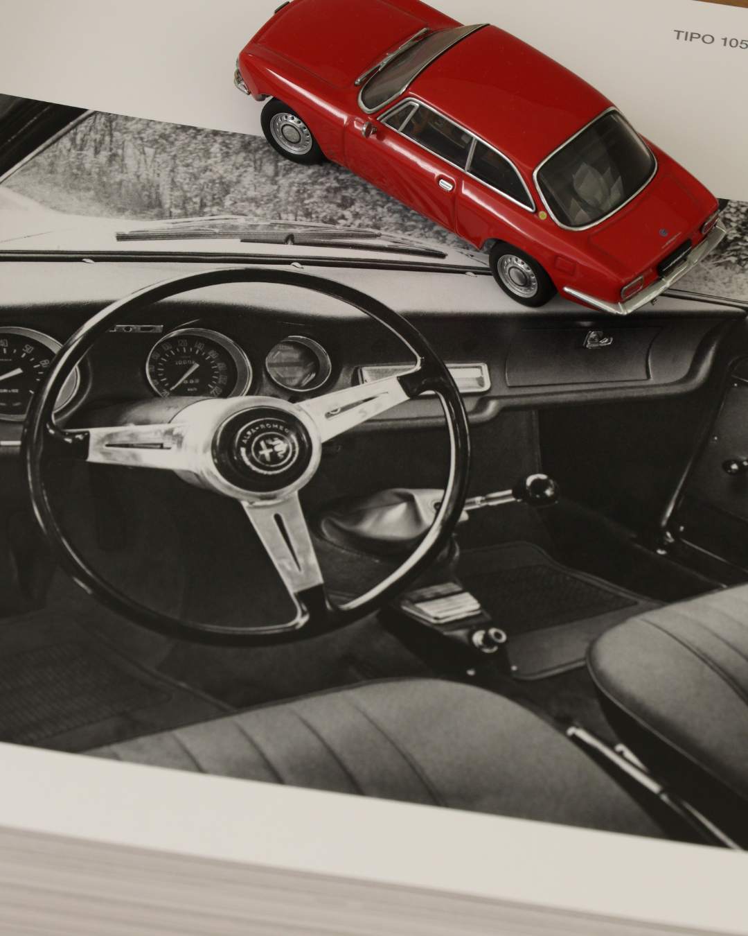 Sempre nel 1963 arriva sul mercato la versione coupé della berlina sportiva milanese, cioè la “Giulia Sprint GT”, vettura di grande successo, che esalta le caratteristiche tecniche di base della “serie 105” (cioè Giulia) e che nel cuore degli appassionati e degli alfisti sostituisce un “mostro sacro” come la Giulietta Sprint. La “Sprint GT” adotta da subito il volante a tre razze della “T.I. Super” (foto 1.18), sottolineando il profilo da Gran Turismo – al di là della denominazione “GT” – prestigiosa e performante.