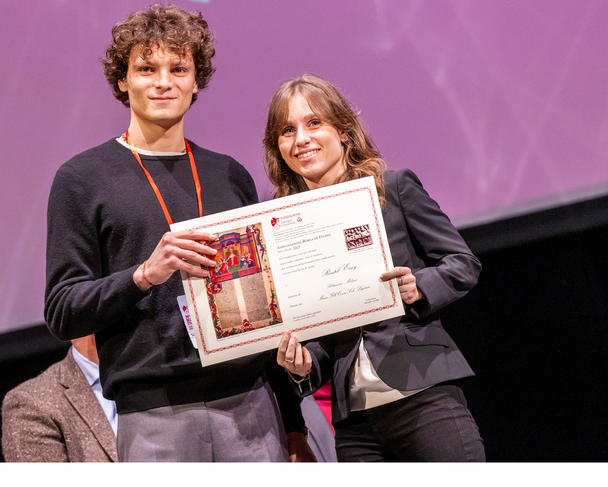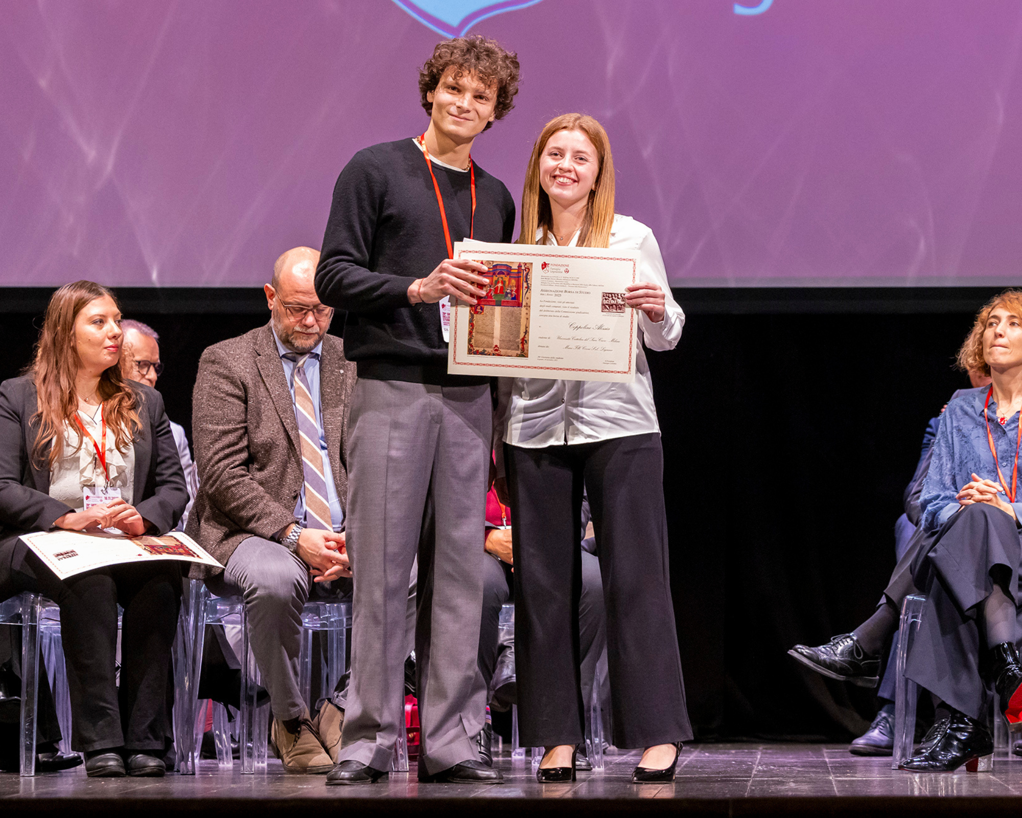 A consegnare le borse di studio è stato Giacomo Cuppini (nelle foto), figlio di Elisabetta, che ha rappresentato il Museo Fratelli Cozzi.
