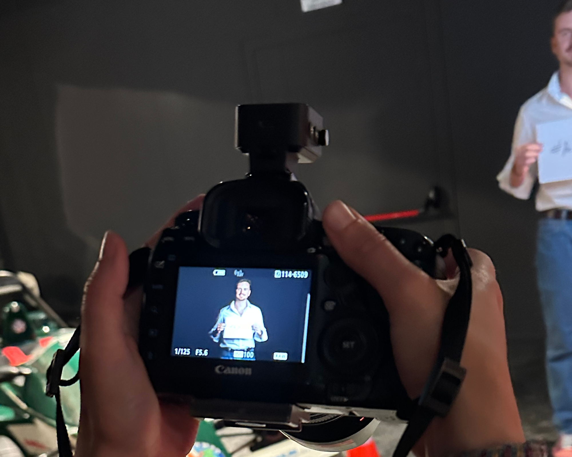 Backstage “Donne e motori? Gioie e basta”: testimonial con cartello HeForShe